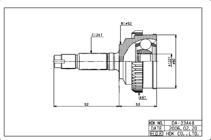 ШРУС наружный / передний правый /левый HDK для Pyzar 1996-2002; 22*52*24; DA-033A48; (TG-2833 TG-2833Z48 DA-033) DH33A48 NS31452H