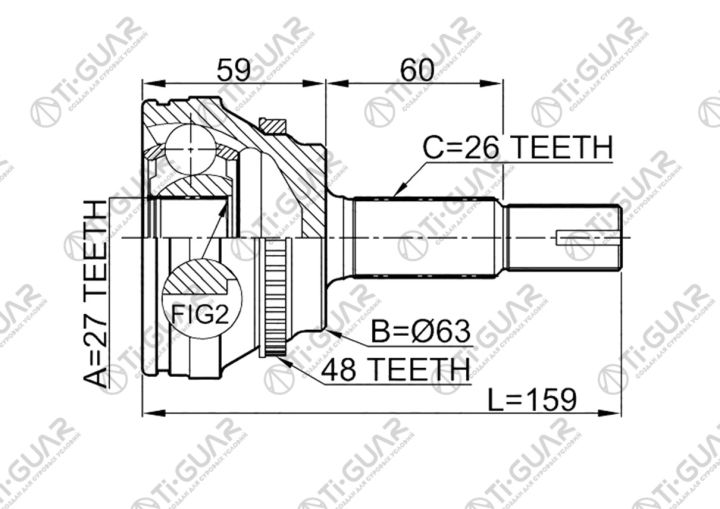 ШРУС наружный /TI-GUAR для Toyota Camry 2001-2006 Harrier 2003- RAV4 2000- Wish Alphard 2002- Ipsum 2001; 27*63*26; TG9504Z48; (TOE072A TG9599Z48 JCT0066A) 4341033240 4342028030 4341044040